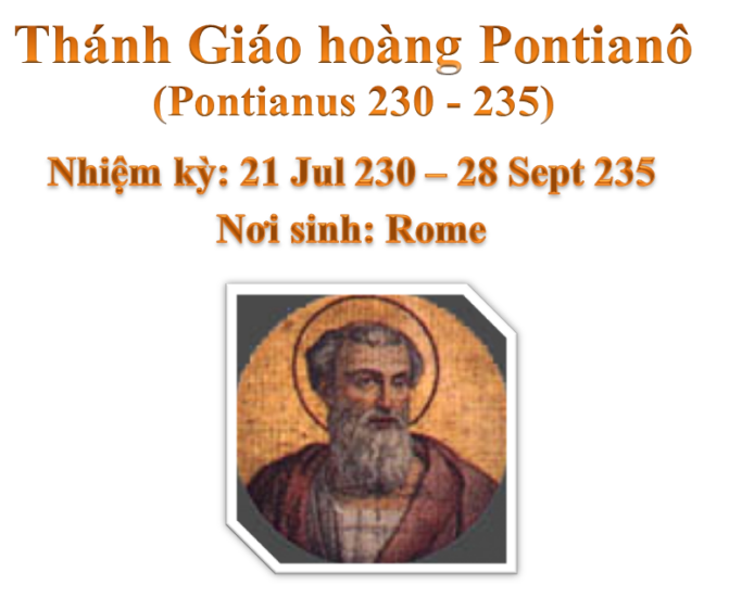 Thánh Giáo hoàng Pontianô Thánh Giáo hoàng Pontianô sinh tại Rôma, được bầu làm Giáo...