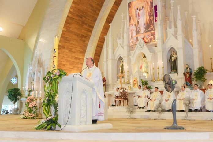 Tiếp đến, Đức cha Phêrô đã ban huấn từ vừa khích lệ các hội viên Legio vừa giúp các hội viên nhìn nhận quyền năng của Thiên Chúa trên mọi loại mọi vật để biết sống khiêm tốn phục vụ tha nhân theo linh đạo của Legio Mariae: “Per Mariam ad Jesum – Qua Mẹ đến với Chúa”.