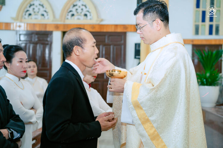 Sau bài giảng, các đôi hôn phối đã cùng nhau lặp lại lời cam kết hôn nhân trong bầu khí trang nghiêm và cảm động. Khoảnh khắc ấy không chỉ là lời nhắc nhớ về ngày đầu tiên lãnh nhận Bí tích Hôn Phối, mà còn là lời xác tín cho chặng đường tiếp theo: tiếp tục yêu thương, nâng đỡ và đồng hành cùng nhau trong ân sủng của Chúa.
