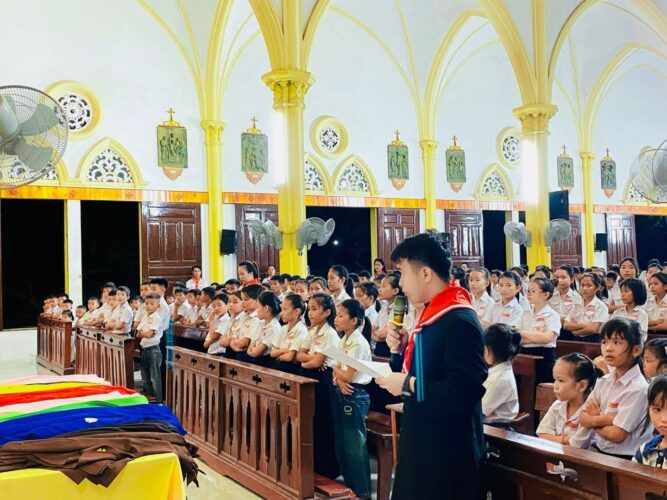 Tối thứ 5 tuần 11 thường niên, Xứ đoàn Têrêsa Calcutta vui mừng đón nhận các em gia nhập vào các ngành trong phong trào TNTT gồm: 118 em ngành chiên, 132 em ngành ấu nhi, 194 em ngành thiếu nhi, 45 em ngành hiệp sĩ, 50 em ngành nghĩa sĩ và 83 em ngành dự trưởng. Với tôn chỉ: “sống Lời Chúa và kết hợp với Chúa Giêsu Thánh Thể qua việc cầu nguyện rước lễ hy sinh và làm tông đồ, các em thiếu nhi thánh thể đã sẵn sàng làm chứng nhân cho Chúa trong cuộc sống hằng ngày bằng việc yêu mến Chúa, và yêu mến Giáo hội. Chúng con xin chân thành cảm ơn cha Tuyên uý đã tạo điều kiện cho chúng con, cảm ơn bố mẹ trợ tá, các bậc phụ huynh đã nhiệt tình giúp đỡ và hỗ trợ chúng con, cảm ơn ban điều hành liên đoàn, hiệp đoàn đã đồng hành với xứ đoàn những ngày qua để có buổi lễ nghi thức long trọng và sốt sắng.