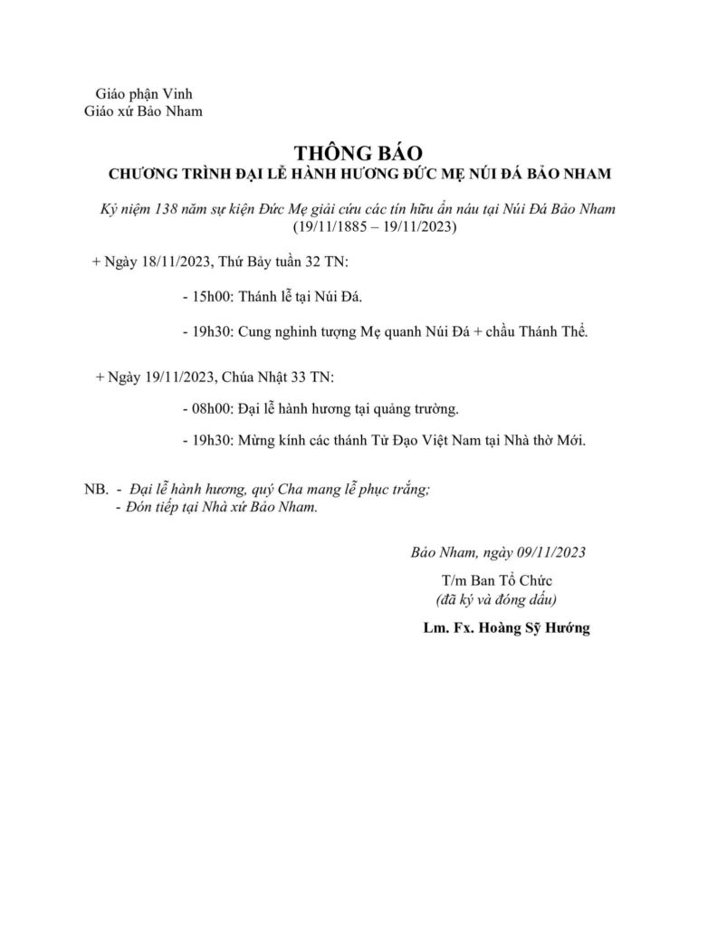 Giáo hội Công giáo Thông Báo Chương Trình Đại Lễ Hành Hương Đức Mẹ Núi Đá Bảo Nham Posted on 12/11/2023 by Admin Post Views: 129 Tin cùng chủ đề Giáo xứ Hải Nạp: Hân hoan lãnh nhận Chúa Thánh Thần để loan báo Tin Mừng